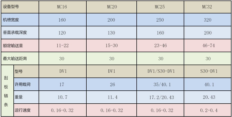 MC型埋刮板輸送機(jī)主要技術(shù)參數(shù):